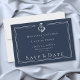 Celebrate your seaside love with this navy blue nautical anchor coastal wedding save the date card design. Featuring a crisp white anchor and elegant lettering on a deep navy background, it's perfect for a yacht club or beach ceremony. Sophisticated and timeless for your nautical themed wedding day. Created by Simply Farmhouse Press.