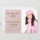 Anuncie seu grande dia em estilo cintilante com esta foto cor-de-rosa esbranquiçada da quinceañera, salve o cartão de data. Apresentando uma borboleta dourada cintilante, detalhes de pontos brilhantes e um roteiro elegante, este design adiciona um toque doce e glamouroso. Uma foto pessoal traz à vida, fazer que seja o perfeito guardião para a família e os amigos. Totalmente personalizável com o nome, a data, a localização e a foto da honraria.