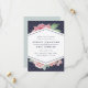 Os cartões salve a data elegantes apresentam uma mistura chic de florais de aquarela vintage e elementos geométricos modernos sobre um fundo azul-da-meia-noite sutilmente padronizado. Um spray de flores cor-de-água cor-de-rosa pincelada espia-se do topo e do fundo de um elemento em forma de diamante central esboçado em azul-da-noite, segurando seus nomes e detalhes de casamento em letras limpas e modernas.