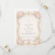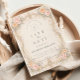 Uma moldura barroca romântica adornada com rosas cor-de-rosa e pêssego, flores de marfim suave e folhagens delicadas. O trabalho em relevo em champanhe esculpido cria uma silhueta elegante e simétrica que parece atemporal e refinada. A paleta pastel arejada mantém o design leve, preservando um charme europeu régio. Perfeito para uma celebração de quinceañera que combina tradição, feminilidade e sofisticação graciosa.