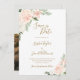 Este casamento floral cor-de-rosa e dourado, exceto o cartão de data é perfeito para um casamento de primavera ou verão. Esta opção salva a data apresenta florais de aquarelas em branco e rosa-claro com verde-sábio. Faça o seu, incluindo seus nomes e todos os seus detalhes de casamento. Adicione sua própria foto ao lado de trás. Para mais personalização, clique no link "personalizar mais" e use nossa ferramenta design para modificar esse modelo.