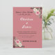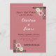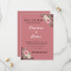 Belo design de convite de casamento com um elegante rosa/mauve. Apresenta elementos florais decorativos com rosas cor-de-rosa e brancas juntamente com verde nos cantos superior direito e inferior esquerdo. O design tem sotaques geométricos pretos que enquadram esses arranjos florais. Há uma linha decorativa no meio onde os detalhes normalmente seriam adicionados, e o elegante texto "Salvar a Data" no topo com um florescimento decorativo embaixo.