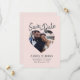 Cartão de salvar a data com fonte moderna e foto cor de rosa, apresentando uma foto centralizada em forma de coração, fundo macio cor-de-rosa e título com fonte cinza. Este design destaca sua foto de noivado, apresentando claramente os nomes, data e local em um layout equilibrado e aconchegante que parece romântico e moderno. Ideal para casamentos, celebrações de noivado, eventos de destino ou renovação de votos onde um anúncio impresso clássico é desejado. Personalize facilmente com seus detalhes.