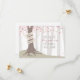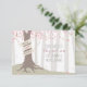 Um casamento ao ar livre salva a data que apresenta a ilustração de uma árvore na floresta com folhas cor-de-rosa e raízes expostas com um banner embrulhado em volta do tronco para nomes de casais.