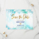 Reserve A Data B'nai Mitzvah Turquoise Watercolor Script Dourado