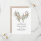 Convite de casamento em tons de marrom poeirado com bolas de seda de algodão rústico e folhas de eucalipto com penas e chifres boho. Ideal para qualquer tema ou casamento de jardim.