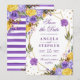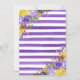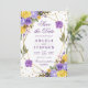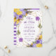 Elegante Boho Aquarela flores roxas e amarelas da primavera e design de folhagem com moldura geométrica dourada