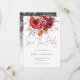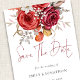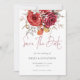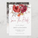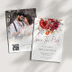 Boho Autumn Foto Sobreposição de Código QR Casamento. Florais lindos com uma vibração boêmica em tons de vermelho e laranja no outono e um roteiro elegante para Salvar a Data. Substitua a imagem de exemplo no verso por sua. O resto do texto que você pode personalizar facilmente com seus detalhes. Adicione seu código QR ao seu site de casamento na parte traseira ou exclua este e o texto na parte traseira, se não for necessário.