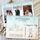 Casamento de Boho Beach Salve a data com 3 fotos personalizadas, porto rústico, elegante caligrafia dourada e costa oceânica de aquarela. Esta bela design tem uma praia arenosa, uma arca de casamento estilo chic boêmia decorada com voile e eucalipto com uma cesta de grama-palha e flores tropicais. A opção "Salvar a data" é escrita manualmente e o modelo está pronto para que você adicione os detalhes da data restantes. Que belo, convidando a design para um casamento de destino tropical, casamento vintage à beira-mar, tema náutico ou de verão à beira-mar. Por favor, procure na minha loja a coleção Boho Beach para coordenar convites, cartões de gabinete e acessórios de correio.