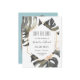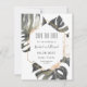 Um belo casamento do na moda de boho tropical Salve o cartão de data com sua foto desejada na parte de trás do cartão. A frente tem uma enxurrada de botânicos de aquarela tropical com orquídeas de pêssego bege e rosas amorosos com folhagem de folha Monstera. Um quadro geométrico dourado rodeia o texto no estilo moderno. Personalize o modelo de texto com seus detalhes e adicione sua foto ao verso.