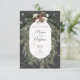 Este design apresenta um pinho verde rústico e buquê pinecone sobre fundo de carvão com flores brancas. É acentuado com uma camada branca de brilho para ilustrar a magia das belas férias de inverno. Perfeito para um Natal ou casamento no inverno. Este cartão faz parte do Boho Green Pine Winter Sparkle Wedding Suite, criado pela Simplesmente Farmhouse Press.