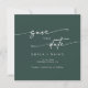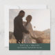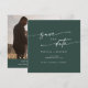 Esta foto do boho chic emerald green quadrado, salve o cartão de data é perfeito para um casamento minimalista. O design verde boêmico moderno da floresta de caçadores de escuros e modernos apresenta uma caligrafia rústica simples com um estilo único, porém clássico. Personalize sua data de salvamento com seus nomes, data do casamento, local, foto do noivado e endereço do site do casamento.