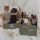 Este código de QR multifoto verde verde-azul-boho salve o cartão de data é perfeito para um casamento minimalista. A design boêmica moderna de tom verde-escuro de madeira apresenta caligrafia rustica simples com um estilo único, mas clássico. Personalize sua data de salvamento com seus nomes, data de casamento, local, 4 fotos de noivado e um código de QR que liga ao seu site de casamento.
