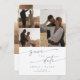 Este código de QR de fotos multicamadas azul azul de boho salve o cartão de data é perfeito para um casamento minimalista. A pálida design boêmica azul e branca, moderna, apresenta caligrafia rustica simples com um estilo único, mas clássico. Personalize sua data de salvamento com seus nomes, data de casamento, local, 4 fotos de noivado e um código de QR que liga ao seu site de casamento.