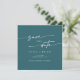 Esta foto azul-teta de boho chic, salve o cartão de data é perfeito para um casamento minimalista. A ousada joia da turquesa azul-escura do moderno design da boêmia apresenta uma caligrafia rústica simples com um estilo único, mas clássico. Personalize sua data de salvamento com seus nomes, data do casamento, local, foto do noivado e endereço do site do casamento.