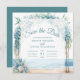 Anuncie seu grande dia com o nosso casamento do Arco Floral Boho Costeiro Salve a Data. Este cartão em forma quadrada apresenta um design de cor d'água de tirar o fôlego de uma vista oceânica serena moldada por um delicado arco floral. As flores brancas e azuis, complementadas por folhas verdes e peludas, criam uma estética litorânea boêmica — perfeita para um casamento de praia ou destino. O elegante e relaxado design dá o tom perfeito para o seu dia especial, convidando convidados para salvar a data para sua celebração à beira-mar. Personalize o texto com seus detalhes de casamento, e emparelhe este cartão com uma papelaria correspondente da nossa coleção Boho Coastal Floral Arch para uma suíte de casamento coesa e na moda.