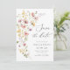 Boho Primavera Colorful Wildflower Elegante Simples Casamento Salve O Convite De Data. Buquê floral estilo boêmio com elegantes e simples flores brancas e botânicos verdes, de forma pastel, em cor d'água impressa à mão. Por favor, edite a parte de trás do convite com a sua foto. A cor verde-clara é perfeita para casamentos de primavera e casamentos florais. Convites editáveis para primavera, verão, outono (outono) e casamentos no inverno.