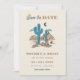 Surpreenda seus entes queridos com esta tendência Salve a Data, com boho deserto, cacto, tipografia retrô, foto personalizada e texto de sua escolha. Adicione facilmente suas próprias informações clicando na opção "personalizar".