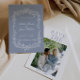 This modern & retro funky minimalist Wedding dusty blue and white floral frame photo Save The Date Template is great for you. If you are looking for a pretty, elegant and easy to customize botanical Wedding Save The Date Template . A very elegant simple white script wedding save the date on white background on the back and blue on the front. And dusty blue floral frame and customizable image on the back. Grab this stylish wedding save the date and make your invites truly engaged.