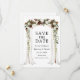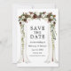 Elegante Canopy Watercolor Green Brown Boho Noivado Floral Boho Anúncio Salve O Cartão de Data inclui lindas rosas brancas e flores marrons. O arco da copa do casamento da madeira inclui vegetação botânica.