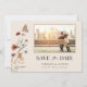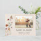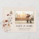 Boho Foto Salva A Data. Este casamento na moda e elegante salve a data com lindas flores de aquarela pintadas manualmente organizadas como um buquê adorável perfeito para primavera, verão ou casamentos outono. Encontre itens correspondentes na Coleção de Casamentos de Boho Wildflower.
