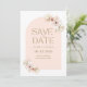 Casamento de grama-rosa-pampas-pincelada Boho salve o cartão de data. Personalize o lado frontal do cartão com os detalhes do seu casamento e adicione a sua foto favorita no verso.