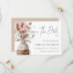 Boho Pampas Grass Casamento de Código QR. Grãos e bagas secos russos e um roteiro elegante para Salvar a Data. O resto do texto que você pode personalizar facilmente com seus detalhes. Adicione seu código QR ao seu site de casamento na parte traseira ou exclua este e o texto na parte traseira, se não for necessário.