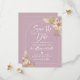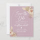 Cartão de compromisso Save The Date em tons lindos de rosa empoeirado, bege e branco com um design de arco e folhagem de grama pampas.