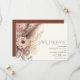 Anuncie os vossos núpcias de uma forma única e na moda com o nosso Boho Pampas Grass Wedding Salve o Cartão de Data. Esta carta elegantemente desenhada apresenta a beleza natural da erva pampas seca, combinada com a ferrugem quente de terracota e tons rosa pincelados, perfeitos para um casamento mestiço ou deserto. A matiz laranja queimada adiciona um toque de calor, fazer a escolha ideal para uma celebração de casamento outono. Este cartão de identidade é a maneira perfeita de começar a sua papelaria de casamento e dar aos seus convidados um gosto da elegância do feiticeiro para vir. Peça agora e faça uma impressão duradoura com você salvar o anúncio de data!