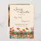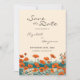 Esta bela Boho Bohemian Photo save card, apresenta um desenho de tinta de flores silvestres de papoila com cores quentes rústicas, laranja e lacre, inspirado na técnica tradicional de arte japonesa, ukiyo-e ou impressões de blocos de madeira japoneses. Personalize este belo Salve o cartão de data com seu próprio texto, foto e código QR.
