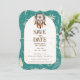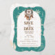 Boho Ranch Wedding Turquoise Faux Leather Save the Date faz parte da nossa Coleção de Casamentos Boho Ranch. Nosso cartão "Salvar a Data" tem um fundo ocidental fofo no meio oeste selvagem. A caçadora de sonhos tarugas com flores e penas é uma bela maneira de impressionar seus hóspedes com este cartão divertido e memorável. Adicione o envelope de impressão da vaca coordenadora para completar a pesquisa Boho Ranch Wedding. Combine-o com qualquer papelaria da Coleção de Casamentos Boho Ranch e produtos para um Boho completo, procure seus convites de casamento e outros itens complementares da Coleção de Casamentos Boho Ranch.