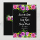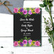 Este elegante casamento floral, salvo o convite de data é perfeito para um casamento floral de verão moderno. A design romântica apresenta flores coloridas de aquarela com elegante tipografia branca sobre fundo preto.