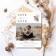 Anuncie o seu amor com este encantador Casamento do Deserto Boho Rust Salve a Data! Apresentando uma combinação cativante de encanto rústico e matizes inspirados no deserto, esta placa destaca uma foto acarinhada contra um pano de fundo de tons quentes e sujos. Compartilhe a sua alegria e entusiasmo com os entes queridos em estilo com este coração a salvar a data.