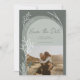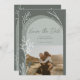 Um moderno deserto rústico e boho, um casamento ousado salva a data. Todos os textos, nomes e cores de fundo são personalizáveis com 2 fotos e fotos em forma de arco rústico com verde-oliva boêmica. com capim de pampas floral seco e editável.