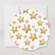 Gender-neutral baby shower invite that features boho style with stars and greenery. Gold & green palette.