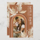 O casamento Elegante de boho salva os cartões de data com uma foto da noiva e noivo em um arco monocromático de tom de terra, folhas secas de palma do deserto com aquarela, grama de pampas, e um moderno salva nossa modelo de data.