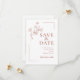 Este casamento salva a data mostra um design minimalista e elegante com uma delicada ilustração floral, tipografia limpa e sotaques simples de canto. A frente destaca os detalhes do evento em um layout refinado, enquanto o verso exibe uma foto romântica do casal com os nomes abaixo. O olhar geral é moderno, romântico e sofisticado.