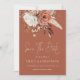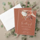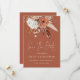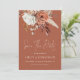 Boho Terracotta Florals QR Code Wedding Rust. Florais maravilhosos em tons de terracota e creme no outono e um roteiro elegante para "Salvar a data" em um marrom anjado de terracotta. O resto do texto que você pode personalizar facilmente com seus detalhes. Adicione seu código QR ao seu site de casamento na parte traseira ou exclua este e o texto na parte traseira, se não for necessário.