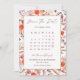 Procurando um calendário de casamento para salvar a data? Olhe para o nosso calendário de casamento de Boho Terracotta Wildflower. Com lindas cores aquáticas, caem flores silvestres, verde macio e um design floral pastel boho chic colorido, isso salva o cartão de calendário combina charme e elegância. Personalize o calendário (clicando em Personalizar mais) com um coração cor de laranja para realçar a data do casamento, juntamente com o espaço para os seus nomes e detalhes. No verso você pode adicionar uma imagem e personalizar o texto.