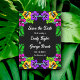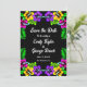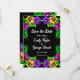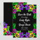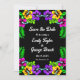 Este elegante casamento tropical salvo o convite de data é perfeito para um casamento de verão moderno. O simples design apresenta flores amarelas, roxas e cor-de-rosa floridas com tipografia branca elegante sobre fundo preto em negrito.