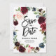 Boho floral: guarde o cartão de anúncio com ilustrações de cor d'água da borboleta, da pincelada e da coroa azul floral com sotaques folínicos. Esta coroa floral salva o cartão de data é perfeito para casamentos no outono ou no outono. Personalize adicionando nomes, data e outros detalhes.