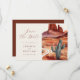 Personalize facilmente seu casamento, salve os cartões de data com este modelo editável. Possui design de tipografia elegante mínima com fundo deserto de aquarela.
