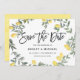 Reserve a Data! Anuncie sua data de casamento para a família e amigos com este limão, salve o cartão. Apresenta ilustrações de aquarela de limão e jato verde com uma escrita rústica. Personalize adicionando nomes, data, local e outros detalhes. Estes cartões salve a data de limão são perfeitos para casamentos de verão.