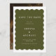 A retro stlye Boho Wavy Border Green and White Wedding Save the Date with your photo on the reverse.
