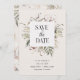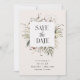 Boho Wedding Guarde a Data. Chic e moderno, este casamento de na moda Salve a Data apresenta belos creme-d-água e flores de marfim pintados manualmente, tan pampas com folhas de palma verdes organizadas como uma coroa de moda. O fundo é bege e o texto é preto. O verso do convite inclui um belo padrão que pode ser facilmente eliminado se preferir. Localize itens correspondentes na Coleção de Casamento de Boho Tropical.