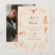 Sale-se por amor com este Boho Western Cowboy Salve a Data! Apresentando botas de cowboy desenhadas à mão, flores silvestres e detalhes rústicos ocidentais, esta design única combina encanto boêmico com um espírito country — perfeito para casais planejando um rancho, celeiro ou casamento no deserto.