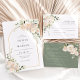 Boho White Rose Floral Sage Green Botanical Arch Elegante Casamento Salve O Convite De Data. Buquê de rosa branca boêmica com convite à arco de ouro falso com florais elegantes e brancos e botânicos verdes em aquarela impressa à mão. Por favor, edite a parte de trás do convite com a sua foto. A cor verde de fundo sage é linda para casamentos modernos de boho e casamentos florais. Convites simples e imprimíveis para primavera, verão, outono (outono) e casamentos no inverno.