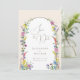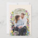 Este casamento floral de beige moderno salve o cartão de data com um arco decorado com flores silvestres coloridas brancas, caligrafia de guião na moda delicada, e uma foto no verso em um quadro de arco. Por favor, verifique a coleção do pacote de convites de casamento correspondente e mais produtos correspondentes.