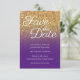 Uma camada de gradiente roxo real contra um fundo de dourado falso. Você pode personalizar os estilos de fonte adoráveis para criar suas datas. O brilho dourado é criado por uma foto impressa de cor digital.