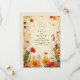 Traga alegria e calor para o seu dia especial com esta alegre design de casamento no outono. Apresentando margaridas aquáticas em vermelhos vibrantes, amarelos e brancos com folhas de queda espalhadas, é perfeito para uma celebração rústica e romântica. Totalmente editável com seus detalhes.